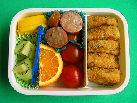 Next, simplify your Bento lunchbox or mini-meal and eliminate the starches. Choose the right low carb foods for Bento. Assemble your box, using the food to make patterns or neat rows.