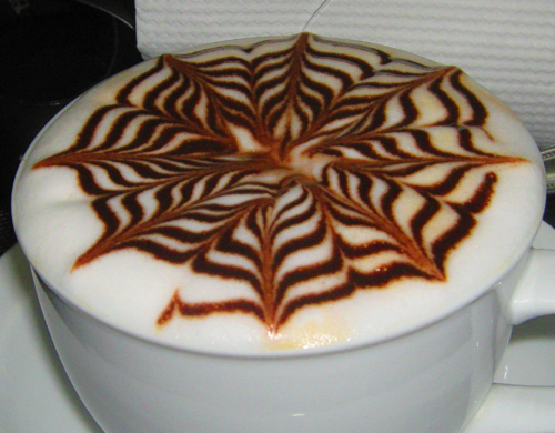 At the last moment, move the stream of frothed cream up through the center of all the circles.